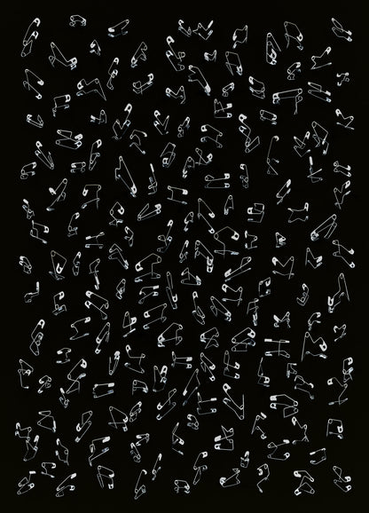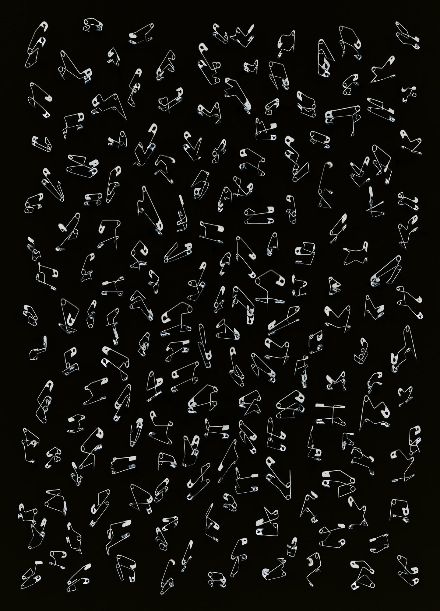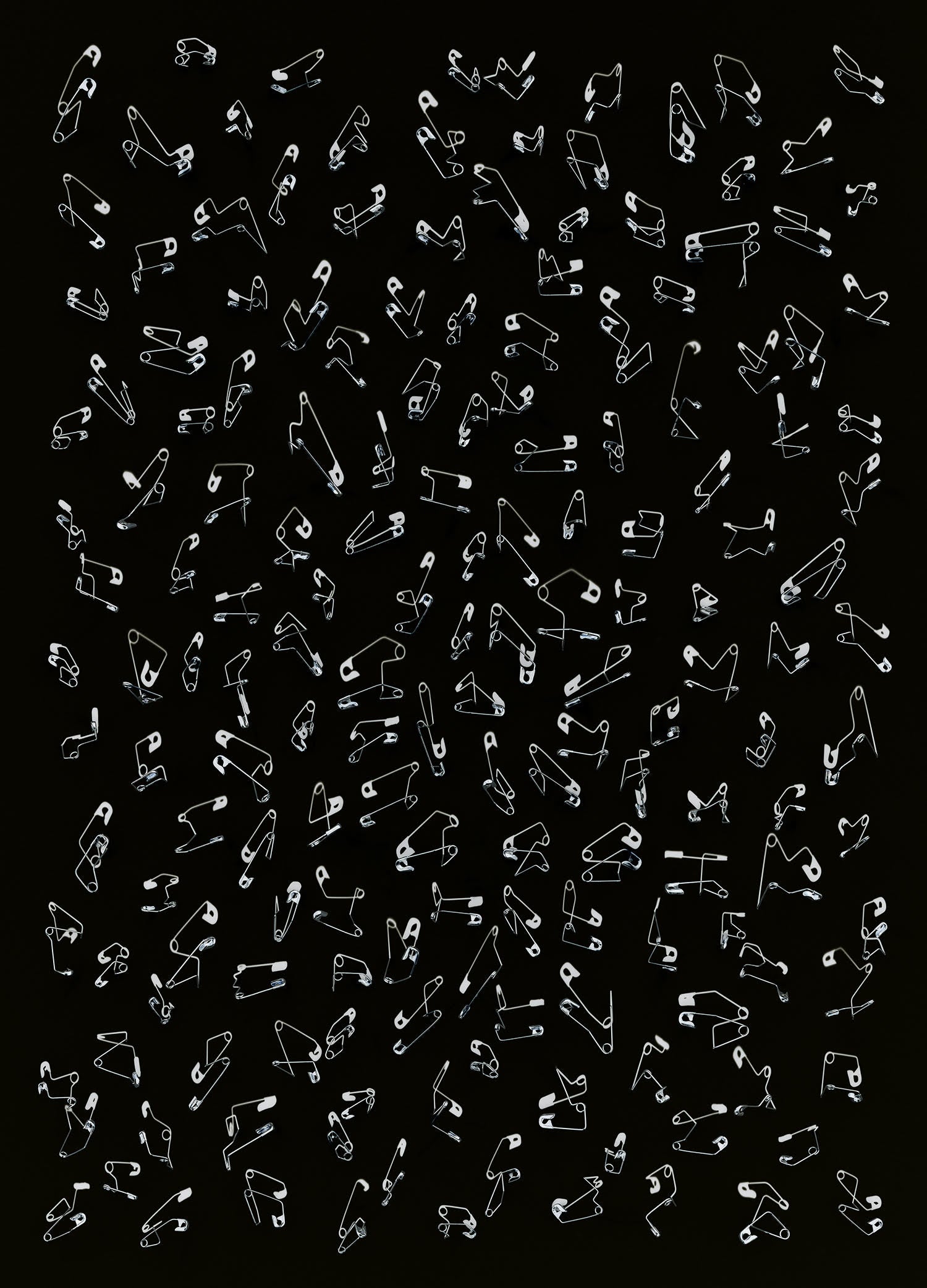 In Agony and Ecstasy Lahde focuses on the safety pin, the iconic symbol of punk fashion and DIY aesthetic. These safety pins have been energetically bent and contorted creating dynamic forms that are photographed revealing high contrast lines and shadows. Together, these safety pins seem to either dance… or riot!